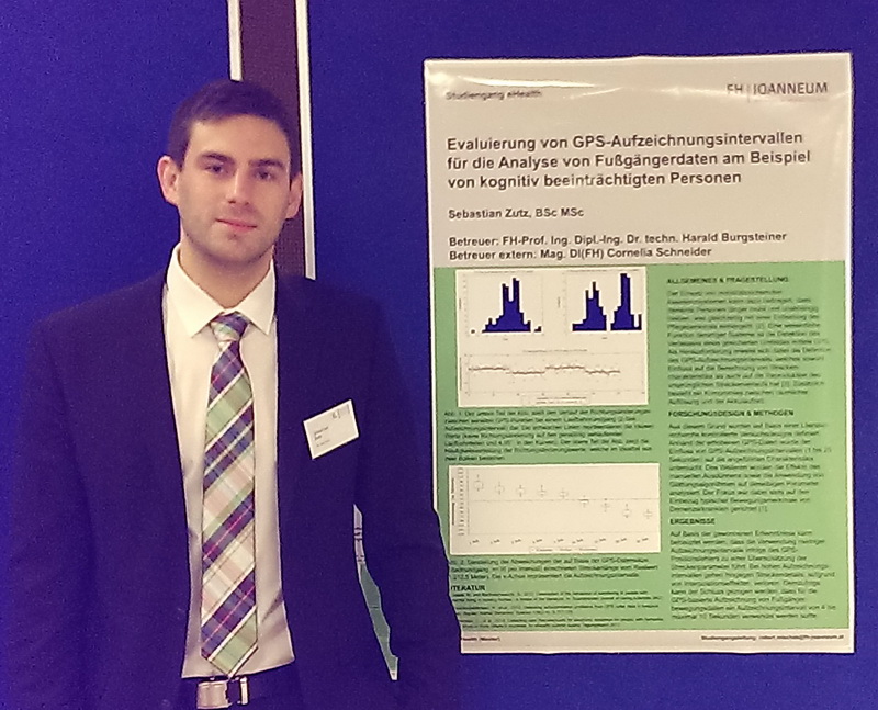 In der Kategorie E-Health wurde Sebastian Zutz (FH Joanneum) zum Gewinner gekürt. Sebastian Zutz war zwischen Juli 2012 und Juni 2013 Praktikant und Diplomand bei der Salzburg Research Forschungsgesellschaft. Seine nun ausgezeichnete Diplomarbeit zum Thema „Evaluierung von GPS-Aufzeichnungsintervallen für die Analyse von Fußgängerdaten am Beispiel von kognitiv beeinträchtigten Personen“ wurde von Cornelia Schneider, Leiterin des Kompetenzschwerpunkts e-Health bei Salzburg Research co-betreut.